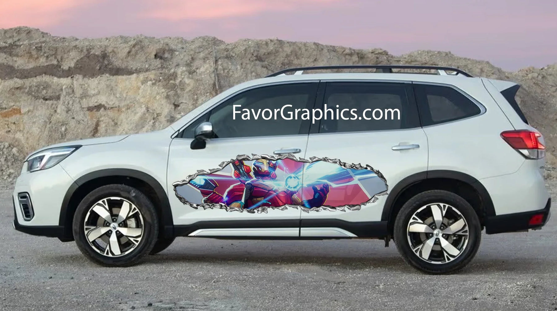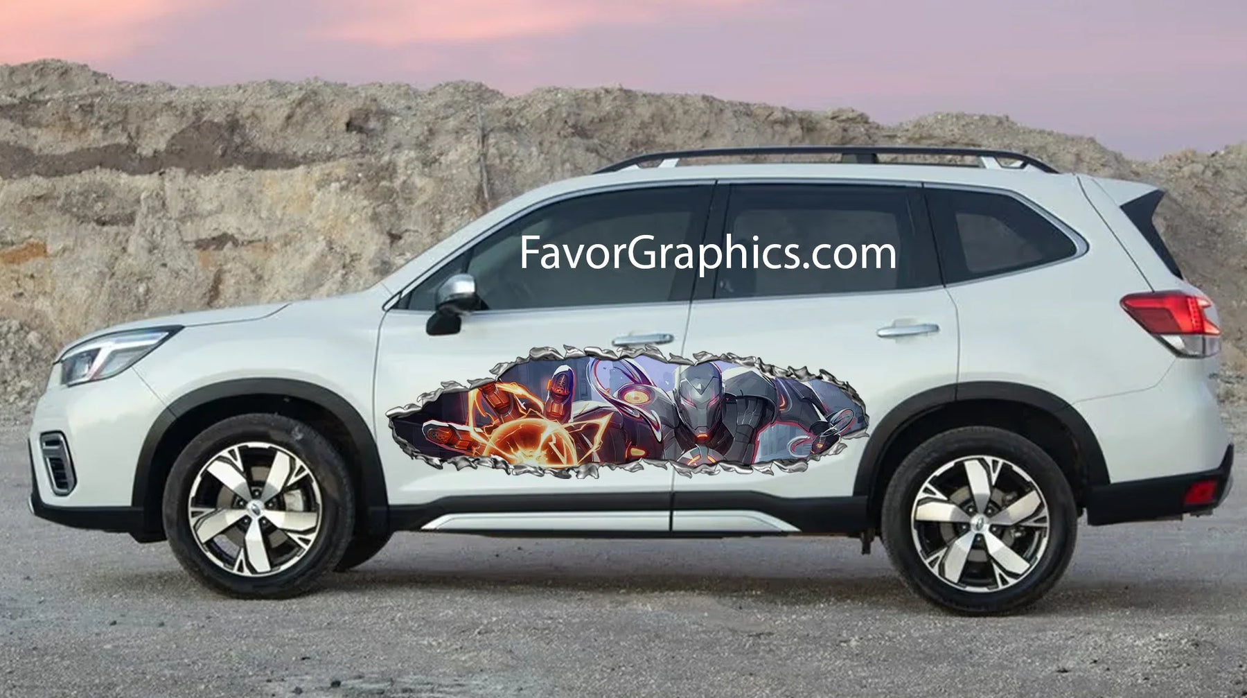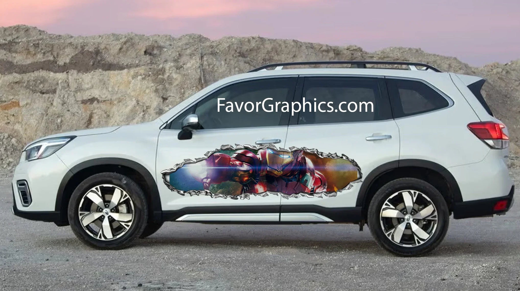 Iron Man Ripped Metal Itasha Car Side Vinyl Wrap Decal Sticker