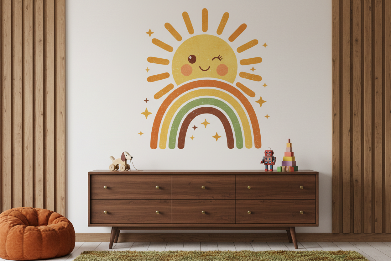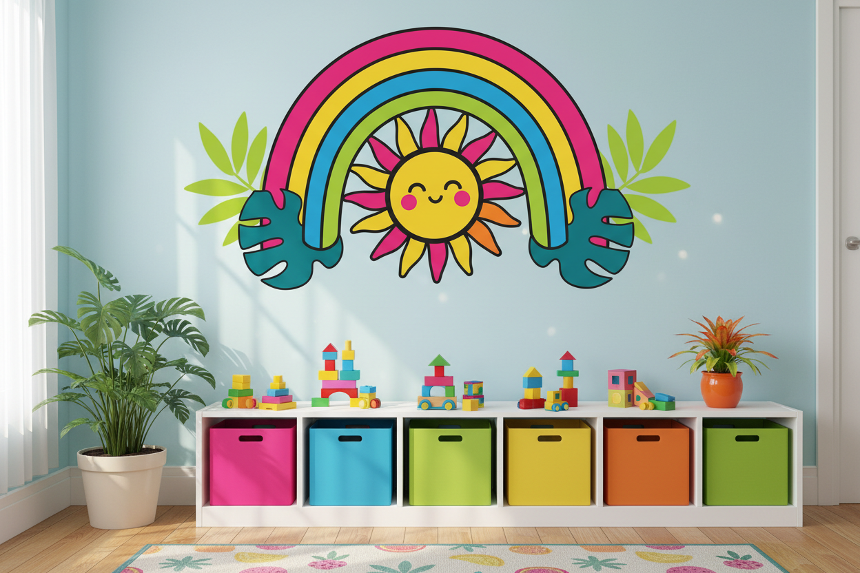 Cute Sun and Rainbow Vinyl Wall Art Decal Sticker